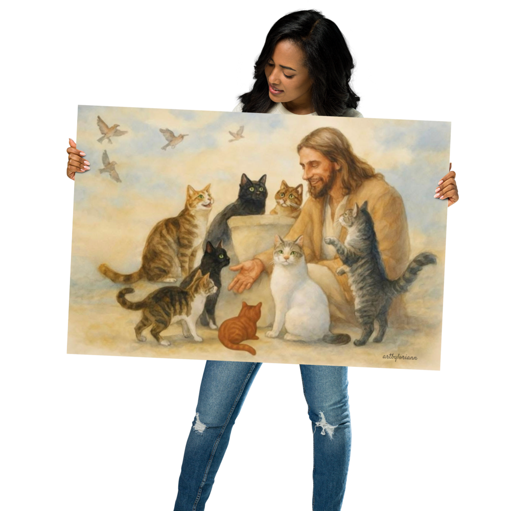 Jesus with Cats – A Portrait of Compassion Poster